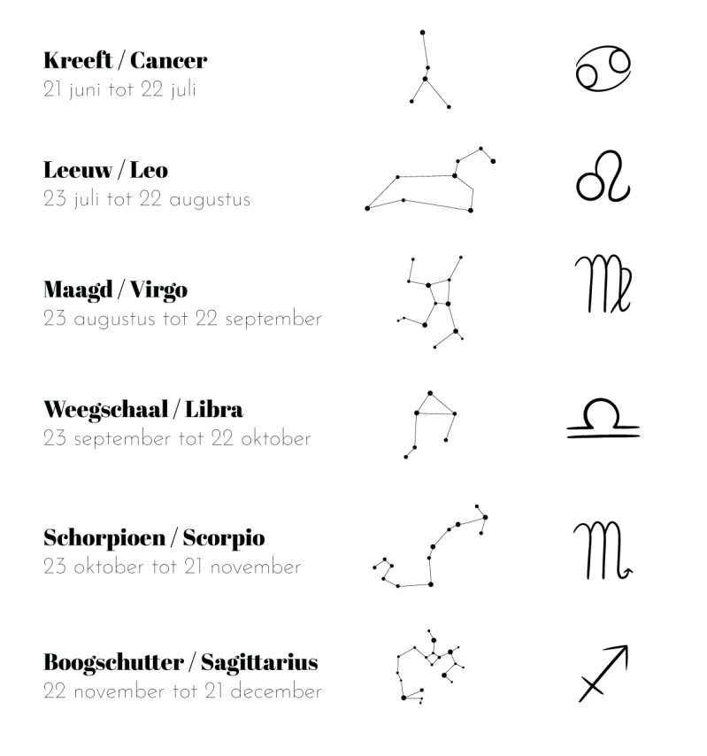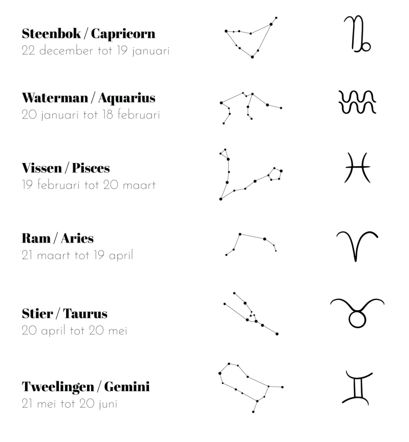 Waterman, tweelingen en weegschaal zijn luchttekens.