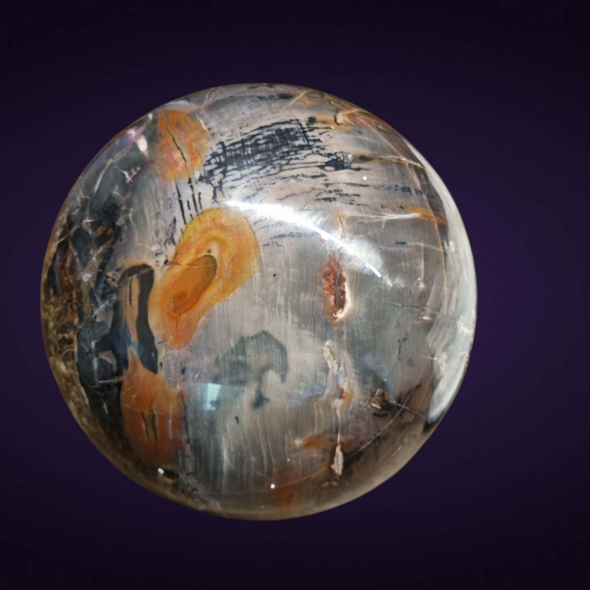 Prachtige bol van versteend hout uit Arizona, met een gewicht van circa 10 kg.