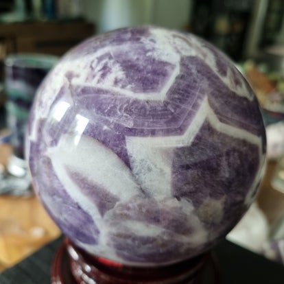 Bescherming en Zuivering: Net als andere vormen van amethist, wordt chevron amethist geacht beschermende eigenschappen te hebben, vooral tegen negatieve energie. Het wordt vaak gebruikt om omgevingen en mensen te reinigen en zuiveren, en zo een veilige, vredige ruimte te creëren.